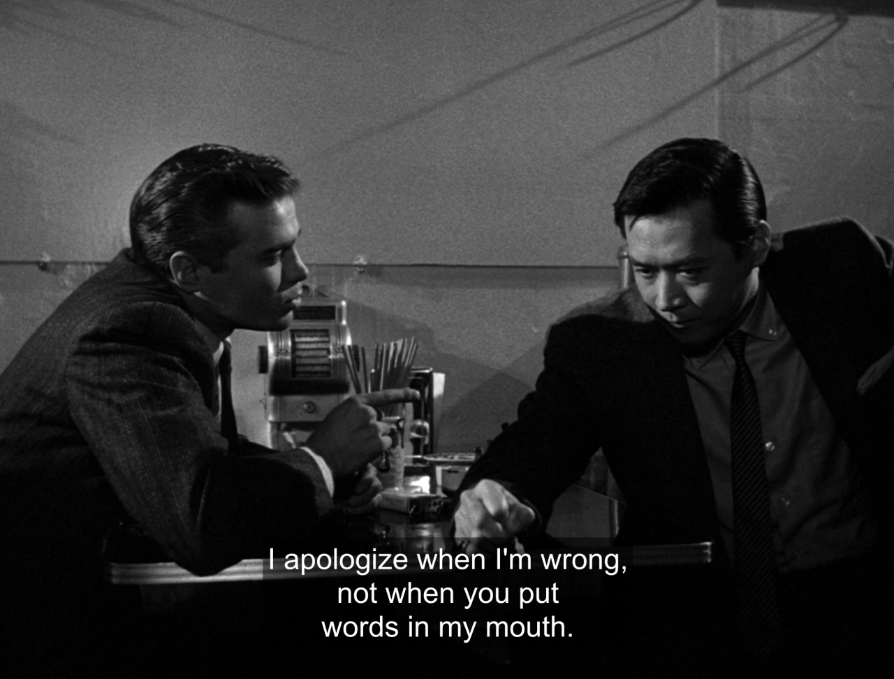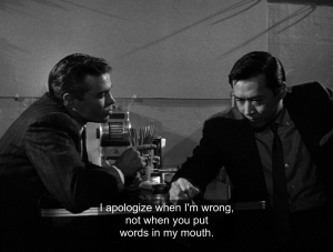 Interesting for the period location shooting in Little Tokyo (L.A. having the largest Japanese-American population in North America), and for the twin debuts of Shigeta, 29, and Corbett, 25, the murder mystery takes a decided back seat to the relationship-ripping racial animus. In a switch, the bigotry is perceived rather than real, and it’s on the part of the guilt & identity-conflicted Joe. Both actors would go on to better work. Here they’re pushed to be overly intense: strut, sweat & spar.