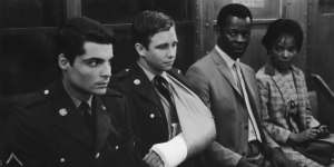 Directed by Larry Peerce, written by Nicholas E. Baehr, adapted from his earlier made-for-TV picture Ride With Terror. Done in 1963, that one also featured Musante as one of the villains, along with Gene Hackman, Vincent Gardenia and Ron Leibman. Reviewers in 1967 (and some today) connected The Incident with the infamous 1964 murder of Kitty Genovese, but the outline bears resemblance to The Plunderers, a 1960 western with Jeff Chandler. That one’s a real barrel of laughs, too.