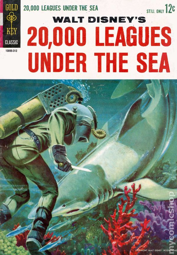 20,000 LEAGUES UNDER THE SEA, Jules Verne’s classic nautical adventure, was first published when Ulysses S. Grant was President. Eighty-five years later another general manned the White House in the steady-as-she-goes form of Dwight Eisenhower and Verne’s seaborne saga became one of THE must-see movies for kiddies of the Ike Age. Verne’s Victorian Era imaginings were brought to Technicolor life by a fellow dreamer when Walt Disney sank at least $5,000,000 into his biggest-ever live-action feature. Producing it personally, Walt delivered a 1954 whopper—“A Whale Of a Tale“—one voyage to the drive-in that pleased Dad’s almost as much as their Dodge, Buick & Oldsmobile-loads of excited offspring. A giant squid! Neato!