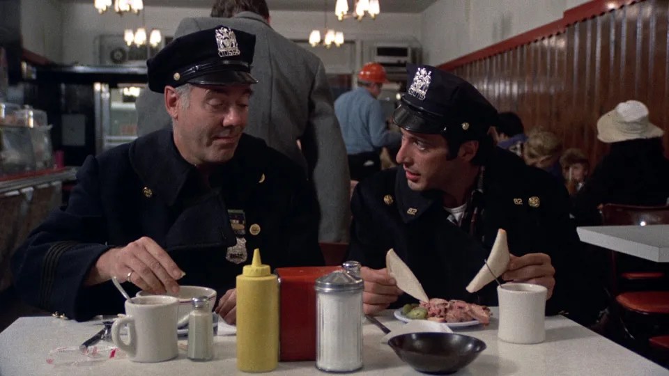 Gripping at the time, and intense all the way, it’s lost some of its steam over the years, but Pacino’s immersive performance holds up, with two exceptions the large supporting cast register with uncomfortable believability, and Lumet’s direction is tight. On the debit side, it goes on a bit too long at 130 minutes, and Mikis Theodorakis’ score tends to lay on the suds. Serpico’s home life, frantic and frivolous, then fractured and futile, with girlfriends played by Cornelia Sharpe and Barbara Eda-Young, isn’t compelling (nor are the two actresses); that material feels forced.
