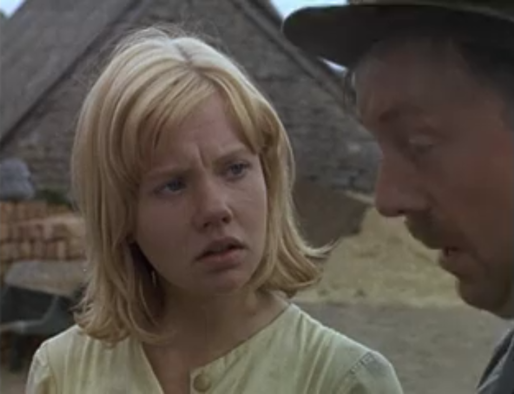 Sixteen-year-old English country girl ‘Brydie White’ (Mills,19) is considered by the villagers to be “sky west and crooked” (‘not quite right in the head’). Father gone, her mother an alcoholic shut-in, Brydie’s a favorite of the local children but is scorned or dismissed by the adults. At least part of her strangeness—and some of their ire—stems from her involvement in the shooting death of a boy, her playmate, when she was a child. Though innocent of what happened, the trauma left her never quite caught up. Apart from the kids—who share her fondness for burying pets in the local cemetery—her only solace comes from the concerned parish clergyman and via a smitten young lad named ‘Roibin’ (Ian McShane), a member of a nearby transient gypsy caravan.