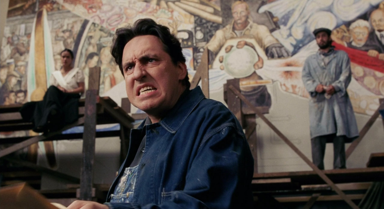Covering the years 1922 to 1954, the story is a passion-infused swirl of vividly imagined settings and passages of imagination, taking Kahlo headlong through joy & despair, lust & tenderness, assignations & arguments, obscurity & apotheosis. In short, an actresses’ dream role, to which Hayek rises to the occasion with grace & sensuality, ferocity & dignity, submerging herself so utterly into Kahlo’s appearance and trials you can almost forget how extraordinarily beautiful and naturally charming she is. Frida’s blessed and cursed circle of fellow travelers includes iconic muralist Diego Rivera (Alfred Molina), Red exile Leon Trotsky (Geoffrey Rush), capitalist fancier Nelson Rockefeller (Edward Norton) and Communist activist artists like photographer Tina Modotti (Ashley Judd) and painter David Alfaro Siqueiros (Antonio Banderas). Betrayal— personal, (her outsized champion and philandering heartbreaker Rivera), political (the word itself serves) and physical (her endlessly tormented body) are battled by an amazing inner reservoir of spirit.