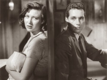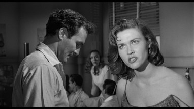 Cobb doesn’t yell quite as much as usual, Matthews is earnest (good voice, inexpressive face), Boone calmly pragmatic. Intense newcomer Robert Loggia plays the chief union rep who earns rough dues from Boone goons Adam Williams and Wesley Addy. The most effective performance comes from lovely, ill-fated Gia Scala as Loggia’s wife: earthy, sexy and real. Included is movie a scene where she matter-of-fact breastfeeds her baby (behind a divider in a café), which had to have been a first in an American movie. Decades before any other film or TV show touched this elemental human act, it’s amazing this little movie (a) put it there in the first place and (b) was never acknowledged for doing so.