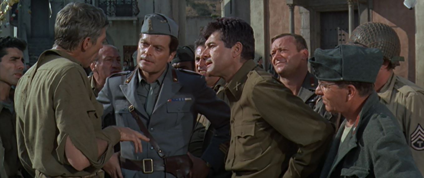During the WW2 invasion of Sicily, a U.S. Army company assigned to capture a village find themselves welcomed by the town’s compliant population and merry garrison of Italian soldiers. A wine festival turns into a drunken brawl/debauch which unites the two sides. To keep their peace party going schemers ‘Lt. Christian’ (James Coburn) and ‘Captain Fausto Oppo’ (Sergio Fantoni) hatch a plan: stage combat in order to fool high command. Flustered ‘Captain Lionel Cash’ (Dick Shawn) is seduced by local signorina ‘Gina Romano’ (Giovanna Ralli), but then the more serious Germans show up (go figure) and the darn war messes with everyone’s frenzied fraternizing.