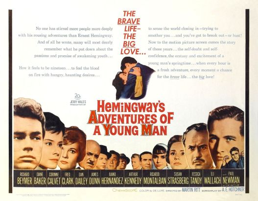 HEMINGWAY’S ADVENTURES OF A YOUNG MAN was in the process of being filmed when Ernest Hemingway committed suicide, so we’ll never know what ‘Papa’ may have thought of the movie when it came out in the autumn of 1962. His friend A. E. Hotchner, with the author’s OK, had written the screenplay from ten of Hemingway’s semi-autobiographical ‘Nick Adam’s short stories, which with one exception hadn’t been previously adapted, and revisited part of “A Farewell To Arms”, filmed twice before. Martin Ritt directed the lengthy, episodic, star-studded coming-of-age drama, location shooting in Wisconsin and Italy. *