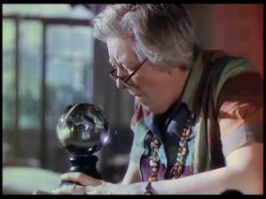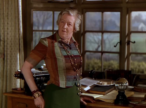 To the rescue with flying color (starting with her mad dash introduction via bicycle) is the priceless Margaret Rutherford. Fifty-three at the time, she’d been in films for nine years and on stage for 21; like Hammond, she’d originated this role in the play. She owns the movie, every scene she’s in is a delight: things sag when she’s offscreen as not only is her acting the most arresting and inventive, but the madcap, sincere and exhilarating Madame Arcati is easily the most likable character in the group.