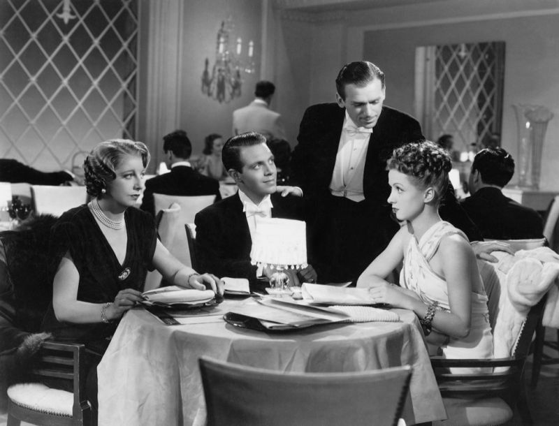 Broke in New York City, French job-seeker ‘Nicolle de Cortillon’ (Darrieux) tries to bluff her way into a modeling gig, but instead ends up embarrassing herself with ad-man ‘Jim Trevor’ (Fairbanks): she thinks he’s a photographer, he believes she’s a good-time gal (or something similar). Her seen-it-all friend ‘Gloria’ (Helen Broderick) hatches a plan with old friend ‘Mike’ (Mischa Auer), headwaiter at the schmancy ‘Savoy Grand’: they’ll use Mike’s seed money for his dream restaurant to foof up Nicole and pass her off as Euro society. This gambit will nab ‘Bill Duncan’ (Louis Hayward) who “owns half of Canada.” But Jim is Bill’s best buddy, and when he sees what the trio are up to, he means to expose them and save his pal. And then…well, take a guess.