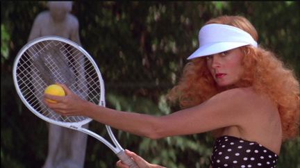 Funny movie goes chaotic in the last quarter, with unexpected special effects spiraling it toward a “what was this all for?’ conclusion. It was not an easy shoot, starting with Miller being forced to take Cher, who he adamantly didn’t want. She promptly used her clout to swap roles with Sarandon, who didn’t find out that deal was done until she showed up to start work. As it was the switch worked, the effervescent Sarandon’s much better in the role she got (and drop dead gorgeous) and Cher’s sarcasm works well in the one she stole. Producer Jon Peters was a nightmare for all concerned.