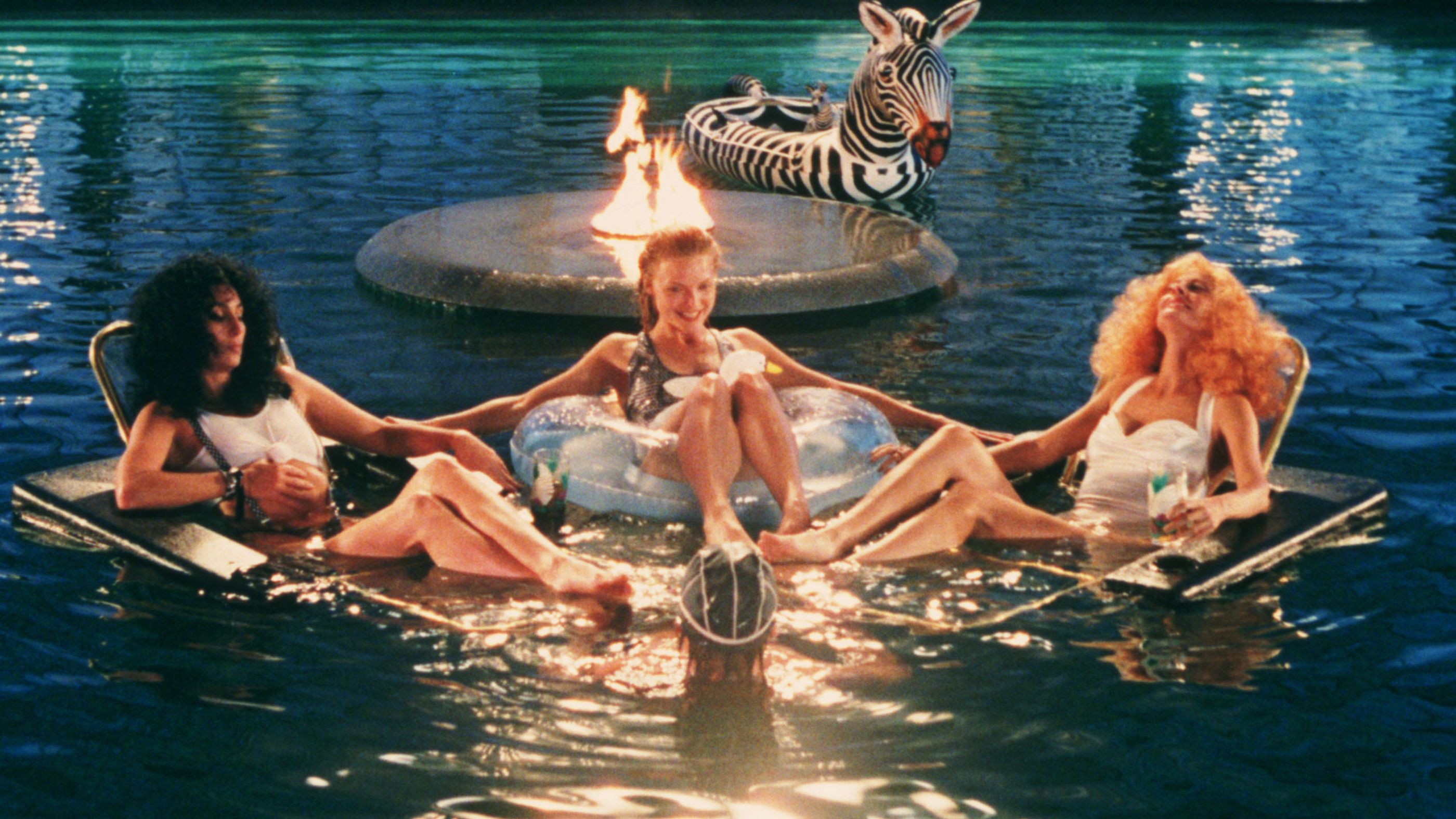Nicholson gets to play it as big as possible and has some great meltdowns, Jack-style. Sweetly beauteous Pfeiffer is charming; the character and her casting drew a choice observation from Ruth M. Crawford: “This film includes many fantasy elements. By far the most fantastic of them is the depiction of a single mother of five, who has to work for a living and still has plenty of time and energy left to engage in wild adventures of sex and magic. If being a witch gives you the ability to do that, quite a few women I know would be very happy to sign up at the nearest coven.”