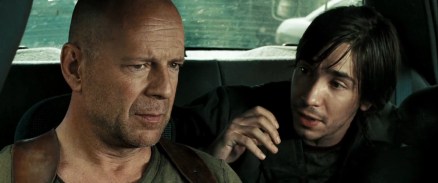 Bruised and blooded Bruce is dead-set on point and Justin Long is excellent as a snarky sidekick, a programmer wonk who Gen-X explains to the dino-cop that “It’s a three-step… it’s a three-step systematic attack on the entire national infrastructure. Okay, step one: take out all the transportation. Step two: the financial base and telecoms. Step three: You get rid of all the utilities. Gas, water, electric, nuclear. Pretty much anything that’s run by computers which… which today is almost everything. So that’s why they call it a fire sale, because everything must go.”