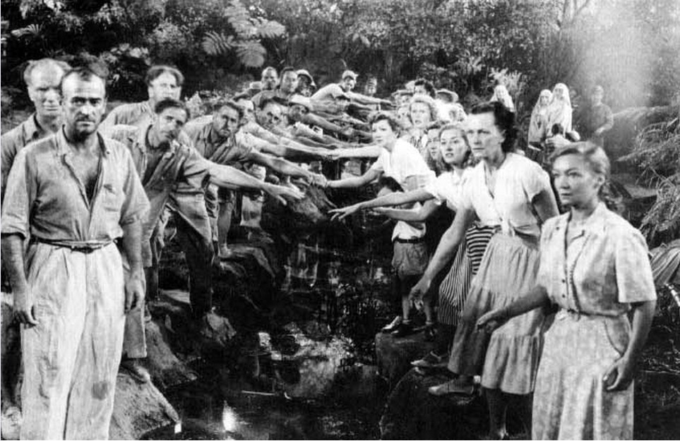 Colbert’s quite good running an emotional gamut; her commitment to the role resulted in a back injury so severe it not only kept her from the premiere but scotched her shot at playing in All About Eve, giving Bette Davis one of her most famous showpieces. As Mr. Keith, the dependable but typically reserved Patric Knowles has one of his best, most demonstrative parts. As the mercurial Col. Suda (who committed hara-kiri after capture before trial as a war criminal) the moviemakers made a smart choice in casting 63-year-old silent era star Sessue Hayakawa, who brings a dimension to the character (Suga, like the captive Keith’s, had an interesting life journey) that was unusual for the time period, and the movie does balance the expected atrocity portraits with the occasional display of humanity from the conquerors. Later in the decade Hayakawa would secure Imperial immortality on The Bridge On The River Kwai. As Keith related “The Japanese in ‘Three Came Home’ are as war made them, not as God did, and the same is true of the rest of us.”