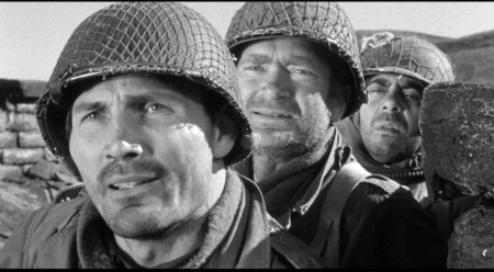 * Aldrich: “My main anti-war argument was not the usual ‘war is hell,’ but the terribly corrupting influence that war can have on the most normal, average human beings, and the terrible things it makes them capable of that they wouldn’t be capable of otherwise.” His wasn’t the only production that year featuring a wacked-out officer: character flaws figured in Between Heaven and Hell, Away All Boats, The Bold And The Brave, D-Day the Sixth of June and The Rack. However, Attack is the harshest. If you wanna quibble, one flaw of the Aldrich picture is the total absence of snow, a salient aspect of the Bulge: bite the budget.