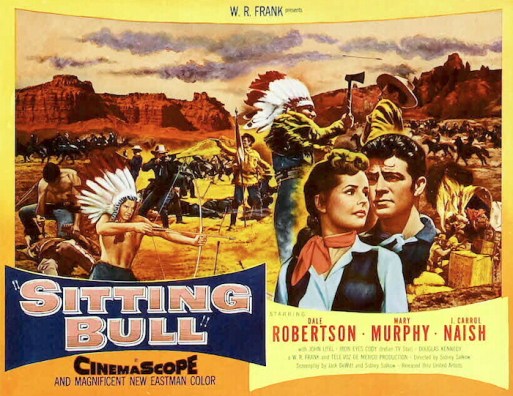 SITTING BULL gets large scale but lame treatment in this 1954 farrago, shot down in Mexico, directed by Sidney Salkow, who, with Jack De Witt, co-wrote the gibberish script. He duffed both jobs. Back in the States, the Sioux were less than pleased that a movie supposedly figuring on their famed leader was not being filmed at or near where it took place. The script pretty much provides the answer: “But once again the White man comes.”