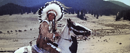 * J.-of-all-ethnicities-Naish had earlier played Sitting Bull in the musical Annie Get Your Gun, neither film are his finest of hours. For some reason Iron Eyes Cody is billed as “Famous T.V. Star” and “technical advisor”, which makes perfect 1950s movie sense since he was Indian by way of Sicily, born in Louisiana as Espera Oscar de Corti. “Iron Eyes” would reprise Crazy Horse for The Great Sioux Massacre (with Australian “Indian” Michael Pate taking over as Sitting Bull).