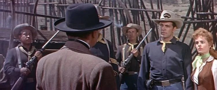 * J.-of-all-ethnicities-Naish had earlier played Sitting Bull in the musical Annie Get Your Gun, neither film are his finest of hours. For some reason Iron Eyes Cody is billed as “Famous T.V. Star” and “technical advisor”, which makes perfect 1950s movie sense since he was Indian by way of Sicily, born in Louisiana as Espera Oscar de Corti. “Iron Eyes” would reprise Crazy Horse for The Great Sioux Massacre (with Australian “Indian” Michael Pate taking over as Sitting Bull).