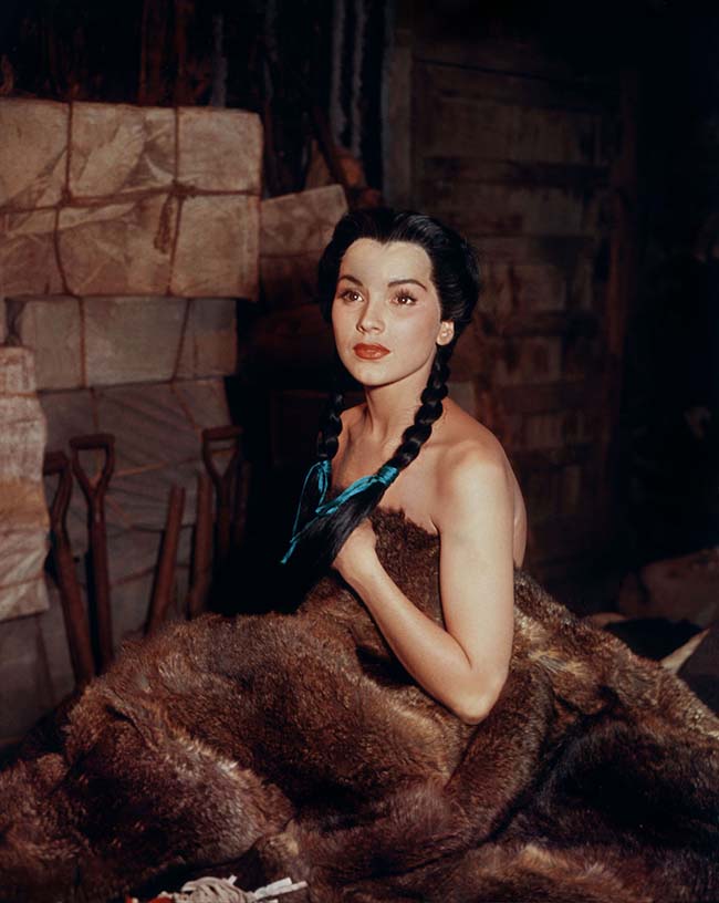 * “The treaty pen does not fit our hand as well as the arrow.” That sinking feeling: the opening admonition recalls Broken Arrow because co-writer Delmer Daves wrote & directed that 1950 success, which also showcased lovely Paget as a desire-stirring maiden. How much of this script was concocted by co-scenarist Leo Townsend we can’t say, but note he was the fella who later gave forth tribal essays Beach Blanket Bingo and How To Stuff A Wild Bikini. Though the Wyoming-lensed scenes used Fort Laramie, there’s a possibility the studio also employed some sets built five years earlier for another Fox epic, the ignored, much better Two Flags West. Diligent digging yields only the suspicion.