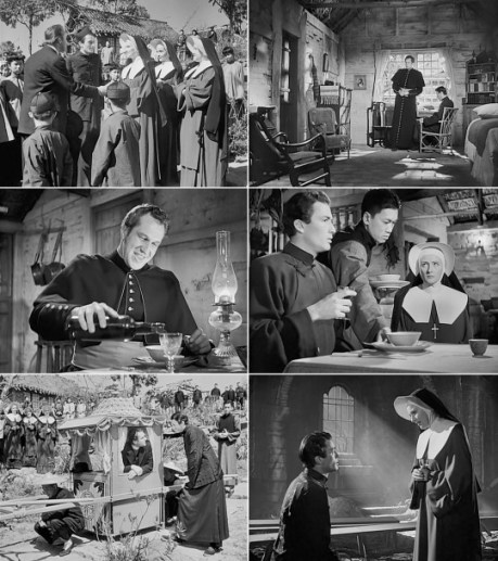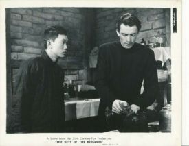 The saga of ‘Father Francis Chisholm’ (Peck) runs from 1878 until 1938, mostly covering his many years at his mission station in China. Roddy McDowall plays the character as a boy in Scotland, and Edmund Gwenn features largely in the segment set there. Gwenn makes a go at a Scot accent, Peck and other actors (Thomas Mitchell, Vincent Price) don’t bother, but it’s not terribly distracting. Both Mitchell and Price show up later in China as well. Important secondary roles are well handled by Rose Stradner (the icy ‘Reverend Mother Maria-Veronica’) and Benson Fong (‘Joseph’, Chisholm’s first Chinese convert and loyal friend).