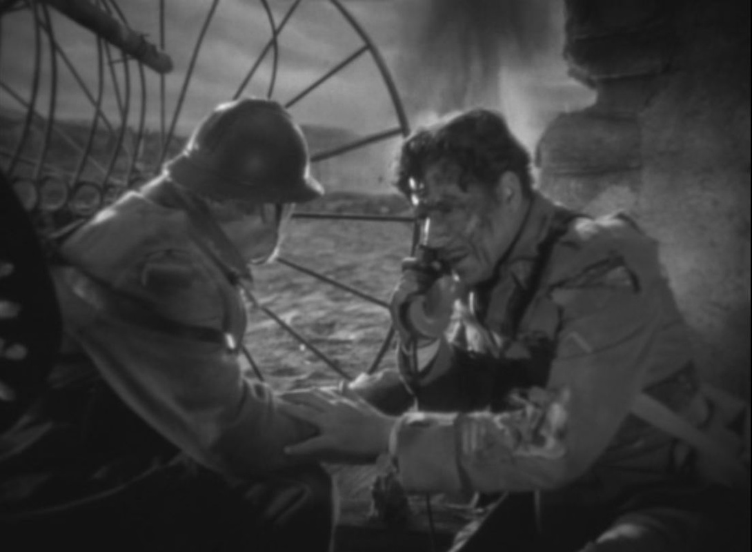 ‘Lt. Michel Dunet’ (March) is new to the company led by ‘Captain Paul La Roche’ (Baxter), an outfit with a tradition of valor going back to Bonaparte. Yet the strain of unending assaults and heavy losses is great. La Roche is a fine officer, but his nerves are further shaken when Dunet becomes enamored of a nurse La Roche loves and when his aged father shows up as a private, eager to serve his son: the older man is under the illusion this war is as it once seemed in earlier times: glorious.