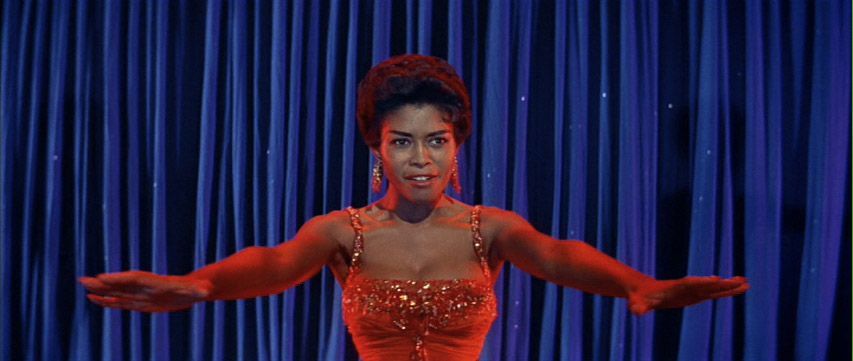 Interspersed with the can-he?/can-she?/will-they? schemata are a raft of musical acts taking advantage of the emergence of rock and roll. If the sex jokes and wild color scheme (Leon Shamroy’s cinematography a plus) don’t suffice, try to hold still for Little Richard with the title number, and “Ready Teddy” or “She’s Got It”, rapturous Julie London’s velvet “Cry Me A River”, Eddie Cochran unloading”Twenty Flight Rock”, Gene Vincent laying down Be-Bop-A-Lula” and—hold the defibrillator—Abbey Lincoln glued into an MM costume for “Spread The Word”. Others include Fats Domino (“Blue Monday”) and The Platters (“You’ll Never, Never Know”).