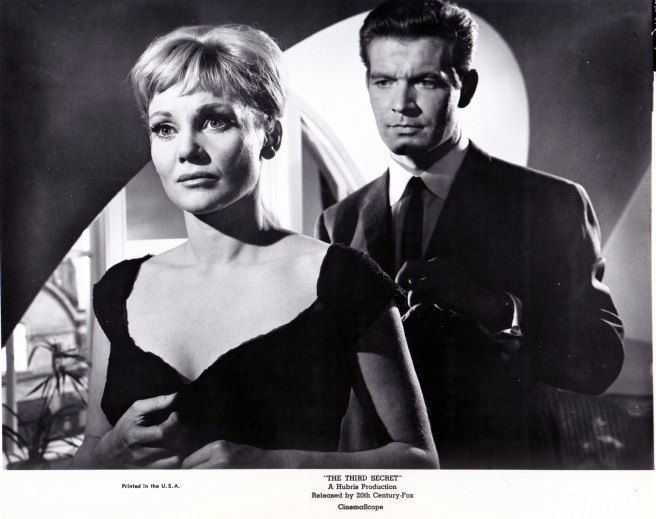 THE THIRD SECRET, according to the script, is “the truth“. The first you keep from others; the second you keep from yourself. Heavy. Rough going for the actors in this pretentious psycho-babble mystery meller from Britain in 1964, a box office terminal patient, comatose at 147th place in the States. Directed by Charles Crichton.