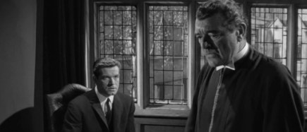 Making the best of weak material are the three vital actors playing the other patients/suspects: Richard Attenborough, Diane Cilento and Jack Hawkins. Attenborough was enjoying a banner year with vivid characterizations in Seance On A Wet Afternoon and Guns At Batasi; he teases his line readings with precision. The inimitable Hawkins also appeared in ‘Batasi‘ and knocked back Zulu as well. Most impressive is Cilento, who brought earthy vitality to every part she played. These three, and Douglas Slocombe’s fine black & white cinematography, almost save an otherwise dreary picture.