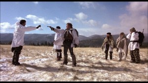 Colorado was played by locations in next-door New Mexico, and Ric Waite’s excellent cinematography is a strong plus. So is the stirring Coplandesque music scoring from the great Basil Poledouris. Swayze delivers an impassioned performance as the leader of the group, and there is a fine job from Ron O’Neal as Cuban officer ‘Bella’, who has revolution-honed sympathies for the underdog (us, this time). William Smith commands attention as Soviet search & destroy expert ‘Strelnikov’ (coyly referencing Doctor Zhivago). Harry Dean Stanton gets a rouse-the-spirit scene. Best of all is the much-missed Powers Boothe as laconic pilot ‘Andy Tanner’, who briefly joins the band and tries to offer some sensible advice. There’s enough furious action for three movies.