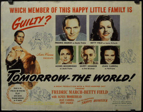 TOMORROW, THE WORLD! jumped the gun on the later The Bad Seed and The Omen by introducing one of the most hateful child villains you’d never want to run across (except with a tank) in the form of ‘Emil Bruckner’, Hitler Youth personified, played by 13-year-old Skip Homeier. Billed as ‘Skippy’ in his movie debut, the boy with the unsettling look had already honed the character in 500 performances on Broadway before joining Fredric March and Betty Field in this 1944 rattler, one of a slew of movies that convulsive year that sought to peer into the mindset of the diehard Nazi enemy. *
