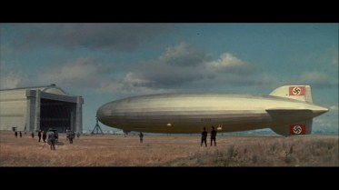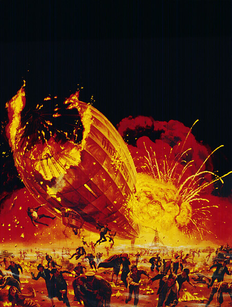 THE HINDENBURG gaslit audiences in 1975, who expected some bang for their balloons bucks, catastrophe-primed by the destructoramas of Earthquake and The Towering Inferno. Since this $15,000,000 opus had a history tie-in, starred George C. Scott and Anne Bancroft and was directed by vetted epic helmsman Robert Wise, how could it miss? Ask the Luftwaffe. For critics, it was a king-sized woof of hot, stale air; no doubt many were convulsed by the movie’s last line, from reporter Herbert Morrison’s famed radio broadcast, “This is the worst thing I’ve ever witnessed“. Well, it’s not that bad; most of the acting is okay and some of the special effects looked fine at the time, yet overall, the moth-eaten dialogue, shallow characters, dull subplots and especially the bungled finale, can’t help but summon a sneer or six. Call it “a Universal disaster”.