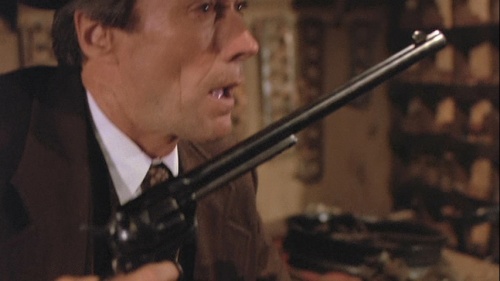 Best aspect is Edward C. Carfagno’s elaborate production design. More interesting than the movie are the assorted versions of what went on behind-the-scenes, related by dueling Eastwood biographers Richard Schickel (forgiving) and Patrick McGilligan (harsh), and Reynolds autobio, “But Enough About Me”. Then there’s the stories from Edwards (disgusted) and Benjamin (resigned). Back to the show: the gags that work best come during the final mopup; one with the two stars producing increasingly larger pistols (kidding images, especially ‘Dirty Harry’), another with Reynold’s capering in a bordello, dressed as The Big Bad Wolf. For those chuckles and yocks, you pay the price sitting through the rest of it, a misfire that few involved with were pleased by.