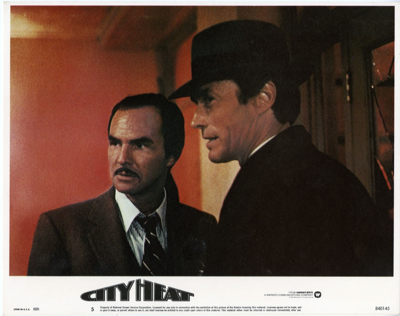CITY HEAT is lukewarm at best, a 1984 fan-snare putting Clint Eastwood and Burt Reynolds together, playing with their tough-guy/smartass screen images by having them in a period piece comedy. With a ton of gunfire. A script originally written by Blake Edwards (as “Kansas City Jazz”) was meant to have him direct, but his way of working clashed with Clint’s, and starpower ruled. Edwards quit (taking a contractual $3mil), replaced as director by Richard Benjamin, with Edwards script credit doctored by the pseudonym ‘Sam O. Brown’ and shared with Joseph C. Stinson, a former book store clerk who’d written Clint’s not exactly giddy Sudden Impact.