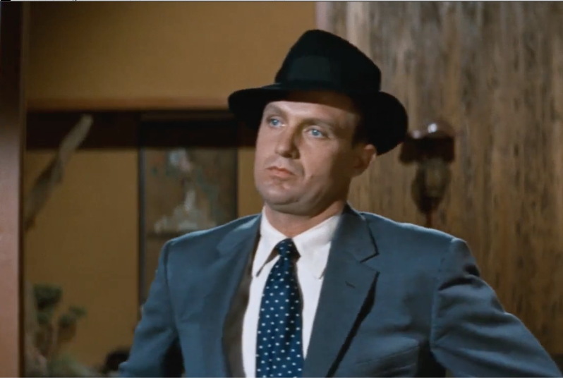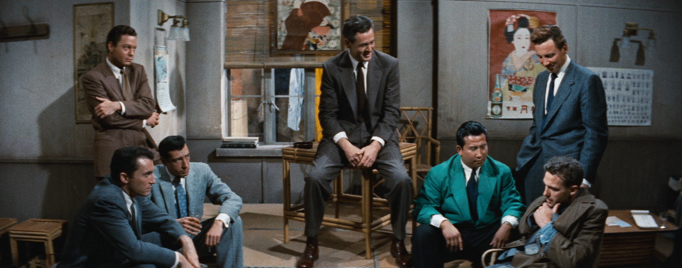 Scored by the unsung Leigh Harline, photographed by Joseph MacDonald. With Brad Dexter, Sessue Hayakawa (dubbed by Richard Loo), DeForest Kelley, Biff Elliot, Harry Carey Jr., Barry Coe, John Doucette, Reiko Sato and Teru Shimada. Made for a thrifty $1,380,000, landing 69th in ’55 with a gross of $4,900,000. 102 minutes.