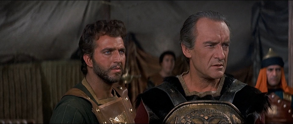 George Sanders—Solomon’s greedy brother— manfully spouts dialogue that must’ve aged him a decade, and the supporting cast is littered with hardies who likewise tackle wince-inducing mouthfuls while keeping straight faces.