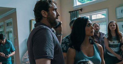 Desultory opening scenes establish the three main characters and lay out at issues: husband and wife are about to split up, little boy caught between, TV news jabbers about a visible comet. Suddenly, while having a party with neighbors, Atlanta-based engineer ‘John Garrity’ (Butler) receives, via phone and TV set, a message from Homeland Security telling him he’s been selected to evacuate to a safety site, and bring wife and child. Digesting the news, its message becomes imperative when outlying pieces of comet ‘Clarke’ begin raining down to Earth, a hail of space bombs that are a fiery prelude to one incoming that’s big enough to add us to the dinosaur roll.