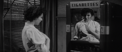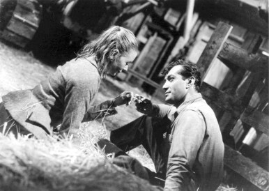 Since Steinbeck’s musings were a mindfield of introspection, it made movie-sense to balance babble with action, thus the insertion of the reasonably decent effects sequences involving the rockslide, river-swamped bridge and generally perilous driving. Reducing 352 pages to 87 minutes interspersed with storm scenes resulted in unsubtle choppiness and portentous, pushy dialogue exchanges that don’t ring true. Director Vicas (sorry, we can’t help it, but Vic Vicas ! ?) may have fared well with his European assignments, but he was out of his quartier with this regional Americana exercise (his other English-language picture, Count Five And Die, was a dud for Fox contract star Jeffrey Hunter).
