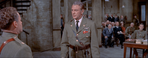 A platoon of able supporting players fill assorted uniforms, with the liveliest impression made by Rod Steiger as a sarcastic prosecutor. In villain mode that year (Oklahoma! and The Big Knife), Rod hams it large: it almost amounts to an impression of Rod Steiger. Making her debut is 22-year-old Elizabeth Montgomery as a friend of Mitchell’s, the wife of an airman who perished when the dirigible ‘Shenandoah’ went down.