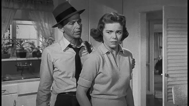 Reviews praised Sinatra’s work, box office revenue of $4,000,000 placed 80th for the year. A trim 77 minutes, with Paul Frees, Willis Bouchey, Christopher Dark, Paul Wexler (just terrible) and John Beradino.