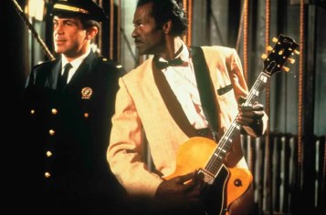 Adding authenticity (aged vintage) were icons Chuck Berry and Jerry Lee Lewis, the bizarre apparition known as Screamin’ Jay Hawkins and one-hitter Frankie Ford. Though unfazed Berry at 51 and wildass Lewis at 42 were obviously not the fresh punk dangers who threatened American moral fabric in the Ike Age, their presence helps fire up the Big Show finale (another thing the script plays dodge ball with).