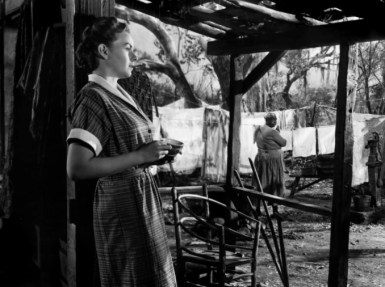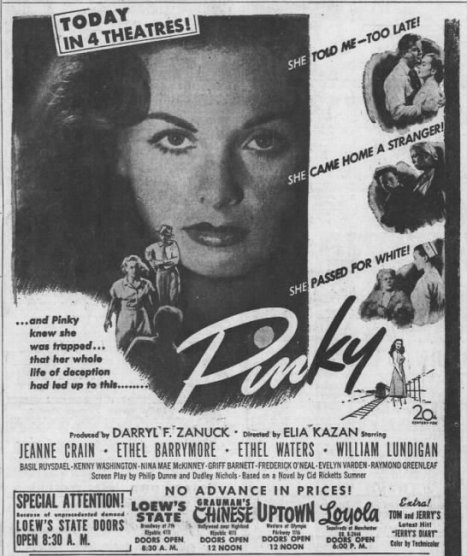 ‘Patricia “Pinky” Johnson (Jeanne Crain, 23) returns to Mississippi. Though black, her light skin tone enabled her to “pass” for white in the North, where she went through nursing school. Revisiting her hometown to see her washerwoman grandmother ‘Dicey’ (Ethel Waters, 52), Pinky soon finds that down-home bigotry is still locked in place, accompanied by threats: personal, public and official. Private matters that call for taking a stand include helping care for Dicey’s dying friend and neighbor, white landowner ‘Miss Em’ (Ethel Barrymore, 69), and Pinky’s secret love affair with a northern, white doctor (William Lundigan) who arrives in time for a number of surprising revelations.