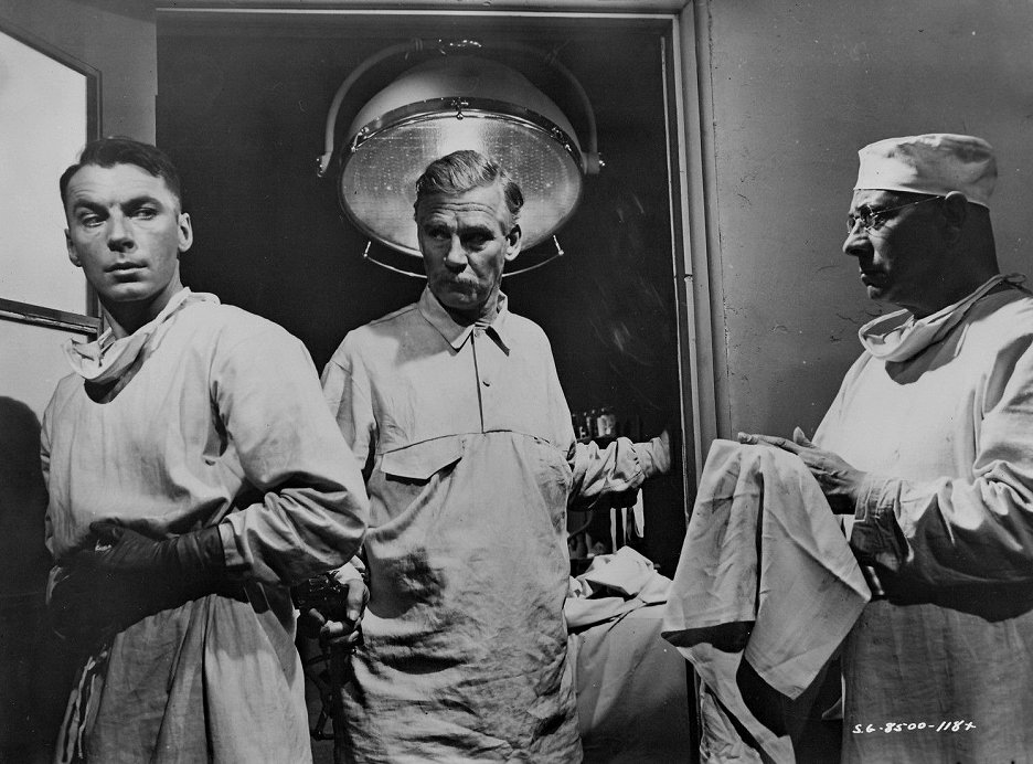 Heart—saluting an ally holding Hitler at bay, sympathy for its people sacrificing on a titanic scale—was in the right place, but a wishful head was so far up the Volga that it nearly met St. Louis, minus only Judy Garland to complete making a “typical” Ukrainian village seem, aw, heck, just like a small town in the Midwest. The first half is practically a musical-comedy, with enough ersatz folksy portrayals of “peaceful, happy” villagers to make an orc barf. Per the fancies of Hellman-Goldwyn & Co. this must have been the one place in the region that escaped smilin’ Uncle Joe’s forced famine of the 30s that killed a mere ten million people. The immediate and simplistically orchestrated resistance to the German onslaught is another load of ahistorical horse puckey. Then, not content to show the Nazis as relentless and brutal, they’re actually made to seem essentially vampiric, with the invader medical officers (led by Erich von Stroheim) casually draining blood from village children to use for transfusions on their wounded.