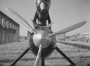 THINGS TO COME came out with a flourish in 1936, announcing the rebirth of science-fiction on screen, dormant—apart from the quasi-horror Frankenstein and its first sequel, and the science-as-horror Island Of Lost Souls—since 1927’s Metropolis. Its failure at the box-office put the cerebral lobe of the genre back in the lab until the late 1960’s. Subsequent sf films were eye-filling excitements (The War Of The Worlds, Forbidden Planet), horror hybrids and nuke allegories (The Thing, The Day The Earth Stood Still, Them!, Gojira) or the campy fare (grades C to F) that flooded the 50’s with crazed physicists, mutated insects and rubbery monsters from other planets or galaxies. Reviews of the day for Things To Come are still valid: dated dramatics and clunky scripting, copious visuals wildly imaginative and spectacular. The prescience quotient, however, is truly remarkable; that, the landmark design and the stunning editing seal it as a major achievement. If you appreciate Fahrenheit 451, Blade Runner, Logan’s Run or Tomorrowland, you owe a visit to that which came before.