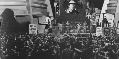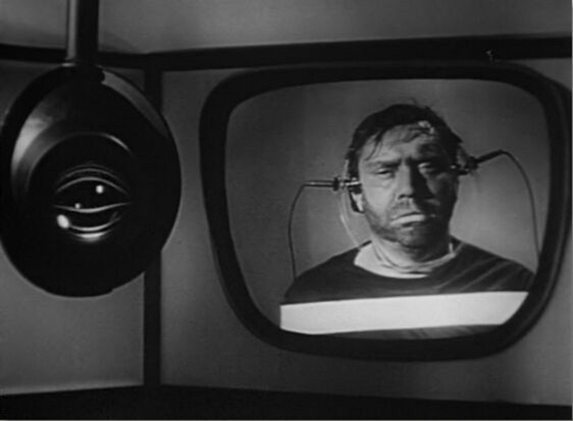 * Thought Police on the Job—Nigel Morris, in a 2012 article for ‘Frames Cinema Journal’ lays out the case that the ’56 version was partially financed by a division of the C.I.A. “Keeping It All In The (Nuclear) Family: Big Brother, Auntie BBC, Uncle Sam and George Orwell’s Nineteen Eighty-Four“. Orwell’s pitch-dark satire has become a planet-strangling reality: “they” know you just read what I wrote, comrade.