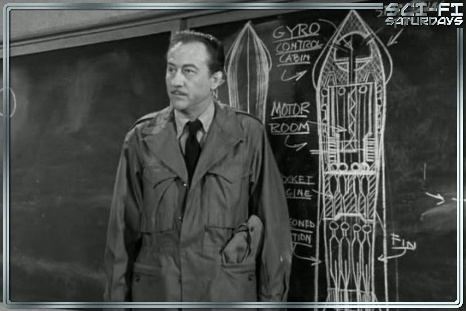 Back on Earth, ‘Dr. Ralph Fleming’ (Morris Ankrum) promises cosmic exploration will not be halted by mere mission massacres: “Tomorrow we start construction of RXM-2!”
