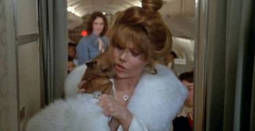 The hoots start with the cast scroll when you see that the lineup of guest-star passengers include John Davidson (with hair helmet), Jimmie Walker (toking up), Martha Raye (her last movie) and Charo (who hides a pooch in her boa). The pilots are Alain Delon (looking bored to be paid) and George Kennedy (again as ‘Joe Patroni’), the lead stewardess is Sylvia Kristel (of ‘Emmanuelle’ fame), with slots reserved for Eddie Albert (who gets gorgeous Sybil Danning for his squeeze), Cicely Tyson (her kid needs a heart transplant, said ticker’s on the plane with her), and a Russian Olympic team—represented by Andrea Marcovicci, Avery Schreiber (!) and Mercedes McCambridge (!!) Subsidiary roles, all poorly conceived, are bravely inhabited by David Warner, Bibi Andersson and Monica Lewis. Fans of the classic 60’s TV series Combat will smile spotting ‘Caje’ (Pierre Jalbert) in the mob. Ed Begley Jr. is in there for a few seconds.
