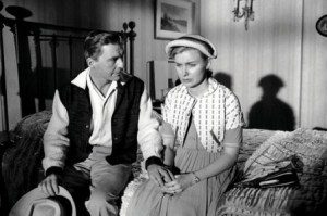 Johnson based his script on the bestseller “The Three Faces of Eve: A Case of Multiple Personality” by Corbett H. Thigpen and Hervey M. Cleckley, the doctors who had handled the case. It caught on with a public fraught with atomic age anxiety, primed by the postwar boom in psychology and psychiatry, and movies like The Search For Bridey Murphy and The Cobweb. Done in semi-documentary fashion, the script is less adept with the psychology aspects than the dramatic; fortunately the latter (more important for a movie, anyway) aren’t marred by undercutting the material with sensationalism; lesser talents would have gone overboard with lascivious Eve Black in particular. Economically done for $965,000, the tidy gross of $4,000,000 ranked 62nd for the year. Its success eclipsed the similar, now obscure Lizzie, with Eleanor Parker and Richard Boone, released earlier in ’57, but failing to find much reception, placing 170th. *