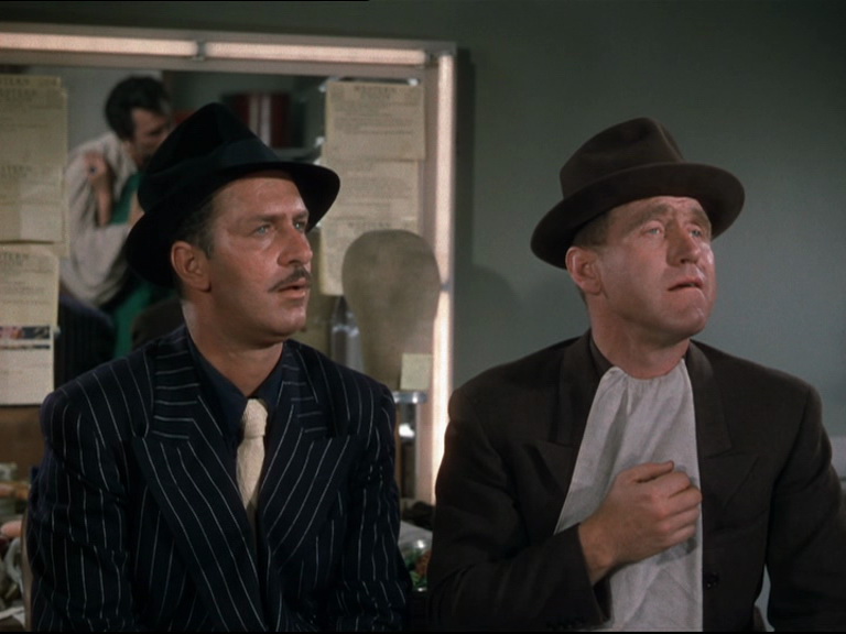 Divorced theatrical couple ‘Fred Graham’ (Howard Keel, 33) and ‘Lili Vanessi’ (Kathryn Grayson, 31) are brought together to star as dueling opposites in a revival of “The Taming Of The Shrew”. On tap (literally) are leggy ‘Lois Lane’ (Ann Miller and gams, 30), three elastic hoofers (Tommy Rall, Bobby Van and Bob Fosse) and genial hoods ‘Lippy’ and ‘Slug’ (Keenan Wynn and James Whitmore). The shrew must go on, but can the spatting stars ruptured romance rekindle?