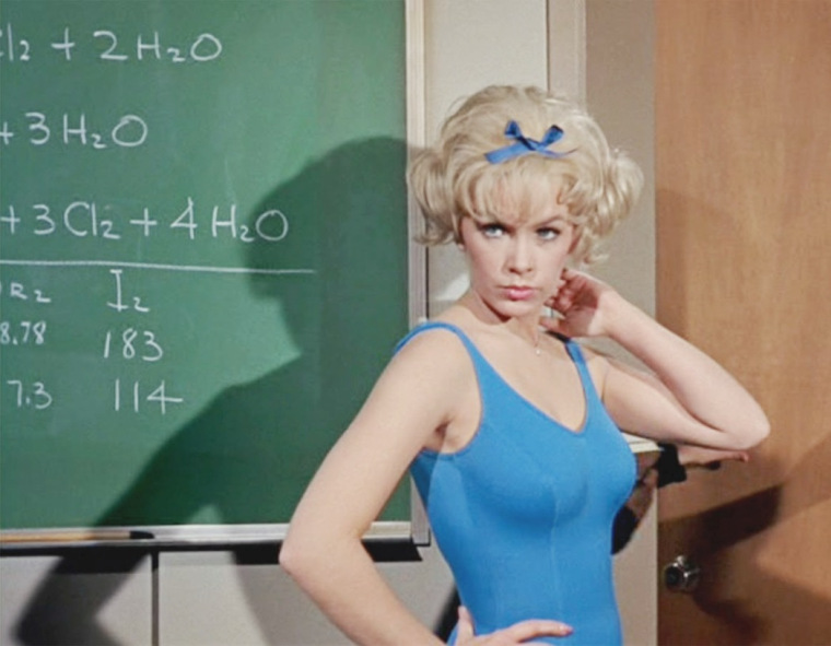 THE NUTTY PROFESSOR wasn’t Jerry Lewis’s biggest hit. Eleven of his sixteen pairings with Dean Martin did better box office, as did six of his solo efforts made before this came out in 1963. His 4th time doing triple duty as star, writer and director, it did do quite well, $11,400,000 taking 23rd spot for the year; none of his subsequent pictures earned as much, let alone were anywhere near as clever or amusing. Even those who don’t have a warm spot for the multi-talented, patience-dissolving manboy consider this signature picture his all-round best. Even when the star’s self-exorcising nears the kill-switch, there’s the sparkle of leading lady Stella Stevens.