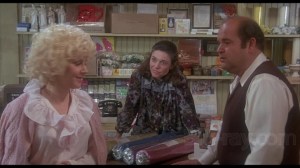 ‘Stout’/’portly’/’stocky’ bachelor shop owner ‘Dominic DiNapoli’ (Dom DeLuise) lives with younger brother ‘Frankie’ (Ron Carey, excellent); pushy older sister ‘Antoinette’ (Bancroft) is in the same building. After an obese cousin dies at 39, Dom’s spurred to diet, his urge to emerge boosted by a budding romance with sweet antique dealer ‘Lydia Bollowenski’ (Candice Azzara) down the block. Fate playing its fickle finger, food-mad Dom falls for a girl who’s anorexic.