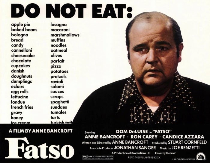FATSO—a quarter century before The Whale, this oddball 1980 item tackled the private anguish of the food-addicted (or whichever designation you may apply) and is the only movie written & directed by the formidable Anne Bancroft, who also co-stars. As an actress, she was gutsy and intense, often memorable, though she binges here, chewing her own ethnic roots— Italian-American, via the Bronx—with such vigor it’s hard to tell if it’s authentic or a put-on. Her writing and direction likewise tip the scales between highs and lows; apart from kudos to her fellow cast members, critics disparaged her erratic CEO skills. At the box-office, the take of $8,700,000 was 81st on the year’s menu.