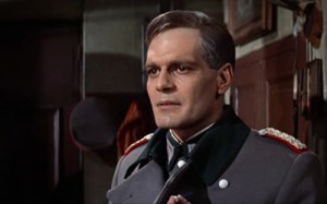 Location filming was done in Warsaw, Paris, Munich and Hamburg, and Sharif (fresh off the titanic success of Doctor Zhivago, a fine actor but rather unlikely German) was just part of a packed cast. The three suspects were Peter O’Toole (first-billed), Donald Pleasence and Charles Gray. Tom Courtenay and Joanna Pettet were assigned a clumsy romantic subplot. Another subplot involves the July 20 plot to kill Hitler and employs brief appearances from Christopher Plummer (as Rommel), Harry Andrews and Juliette Greco.