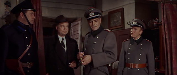 Directed by Anatole Litvak (The Snake Pit, Decision Before Dawn, Anastasia), produced on medium-big scale by Sam Spiegel, the cluttered screenplay by Paul Dehn and Joseph Kessel (with Gore Vidal and Robert Anderson pitching in sans credit) was based on the 1962 novel by Hans Hellmut Kirst, with a nod to a subplot from another novel written in 1952 by James Hadley Chase.